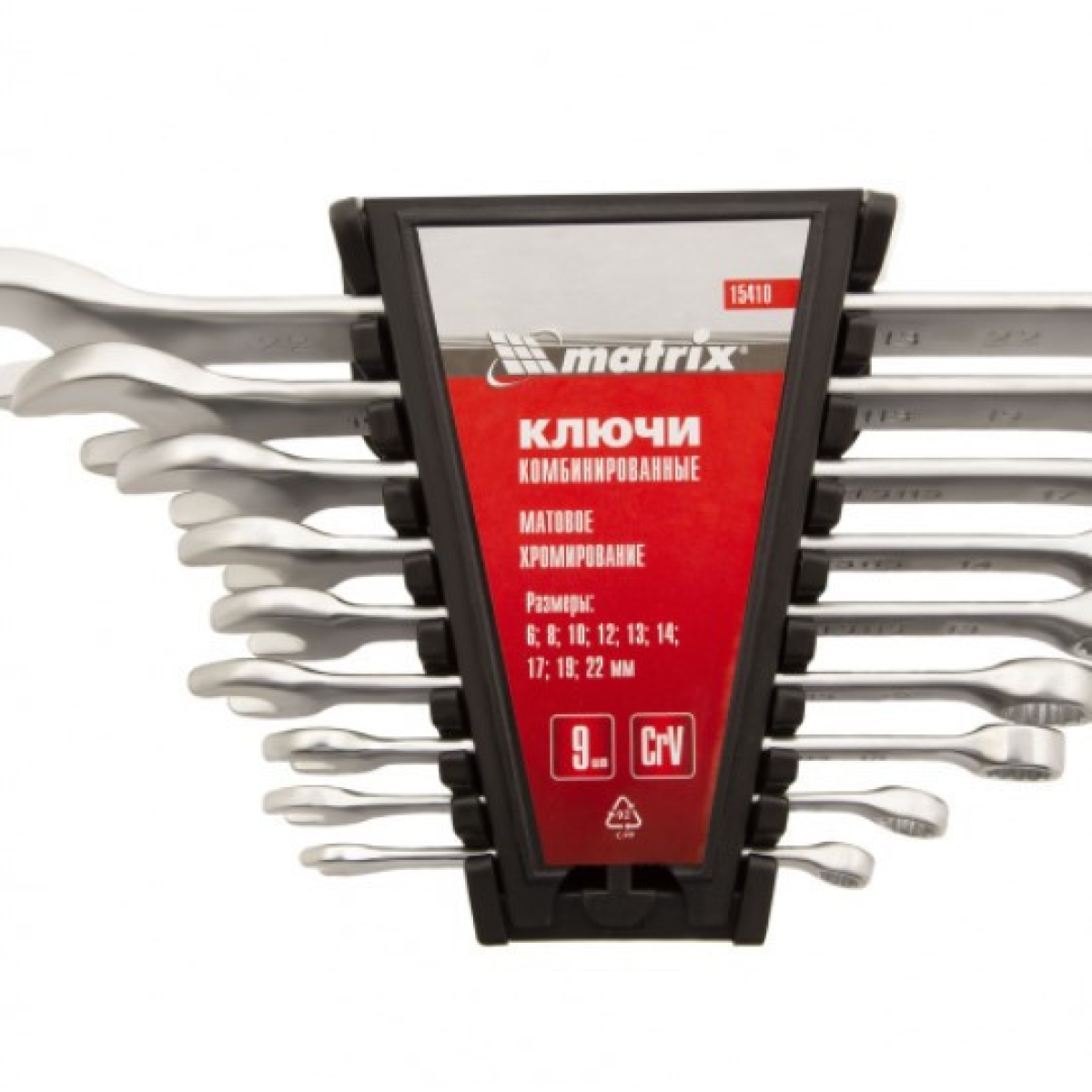 Набір ключів комбінованих, CrV, матовий хром //MTX 9, 6-22, Матовий хром